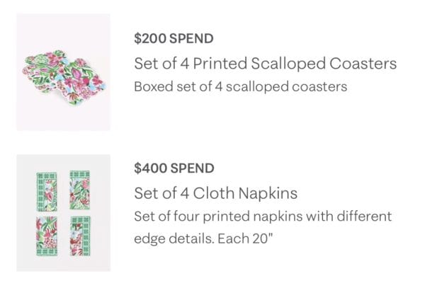 I love when Lilly lets you get multiple gifts with purchase at a smaller spend level. The weekend of March 25-26, 2023, shoppers can choose a playful printed gift with every $200 they spend. Unfortunately, there is a limit of 2 per purchase.