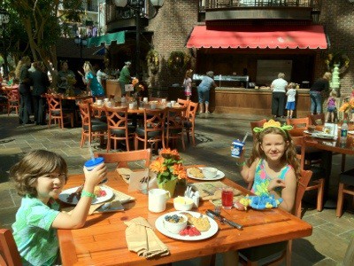 Daddy had to go back to work and couldn’t join us for our feast, but you couldn’t have asked for a lovelier morning to sit under the glass atrium and drink our Shrek swamp juice…yes, you heard me right. They serve the kids (& the adults if they ask!) a green concoction that they call swamp juice. I was a little afraid to ask what was in it, but I figured we’d go with the flow 😉