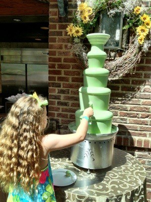 And yes, even though it’s a breakfast, the kids’ other favorite part was the green chocolate fountain. I’d venture to say it was white chocolate with green food coloring that was a little too sweet for my taste, but the kids had a blast dipping marshmallows, berries and pretzel sticks in the green goo! After all, what’s a vacation for if you can’t live a little?
